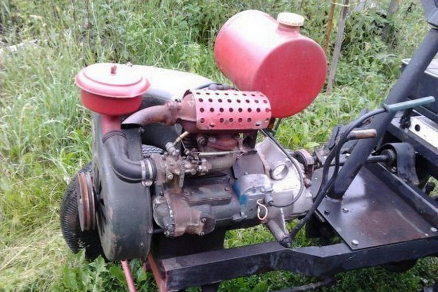 - двигатель заимствуют от почвообрабатывателя. Можно оставить родной редуктор или заменить его многоступенчатой коробкой передач. В таком случае в каракате будет проще управлять скоростями. С редуктором придется остановиться, прежде чем изменить скорость передвижения;