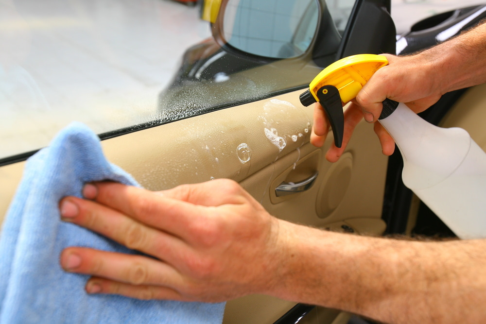 Двери и панель нужно отмывать специальным средством. Начинать лучше с тканевой обивки, если таковая имеется. Окончив очищать материал, можно приступать к пластику