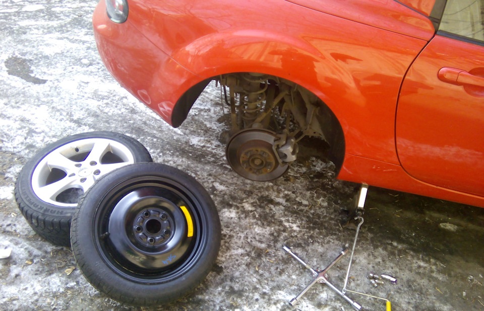 Понятно, что запаску мы ставим на место вышедшего из строя колеса, но мы же можем поменять колеса местами и поставить её на любое место.