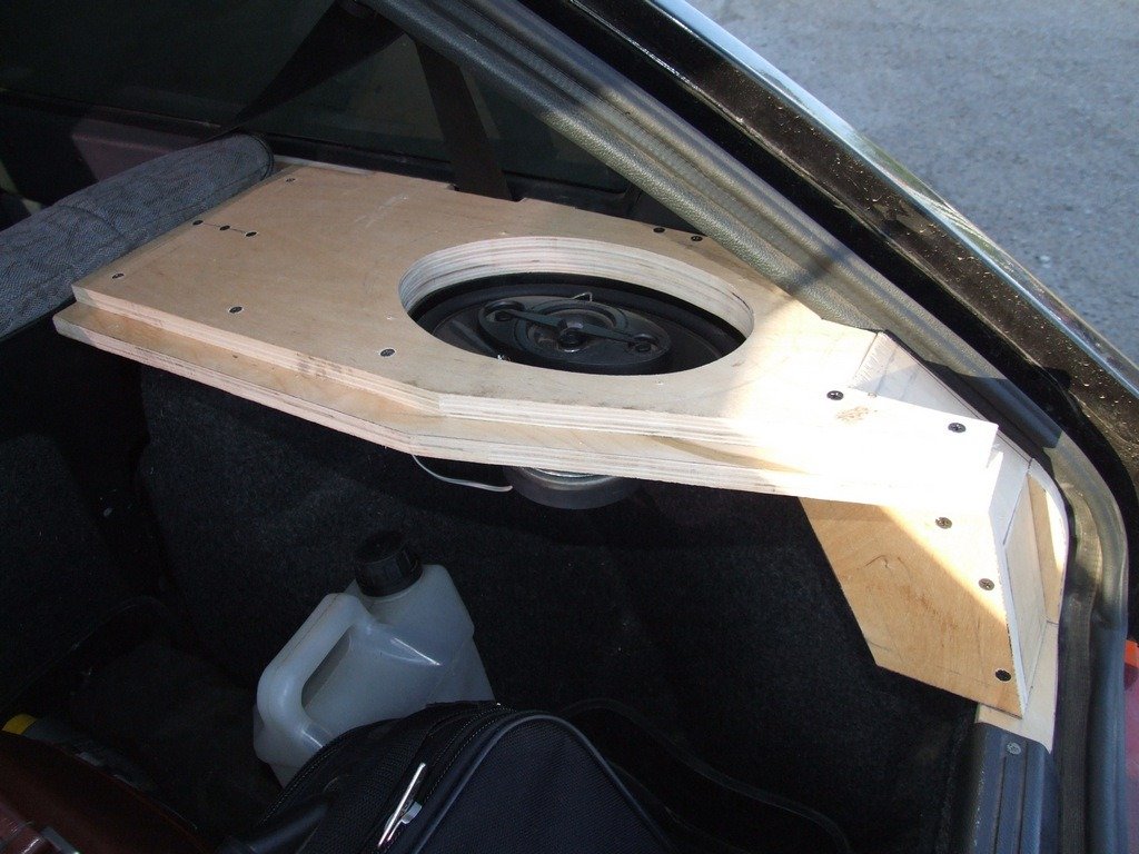 Штатная задняя полка выполняется из очень тонкого материала. Посадив на этот подиум динамики, вы еще больше утяжелите ее. В итоге полка начнет сильно шуметь и греметь при прохождении неровных участков дороги. Со временем снижается качество крепления болтов, на которых удерживается полка. Вскоре начнет шуметь не только подиум, но и боковины.