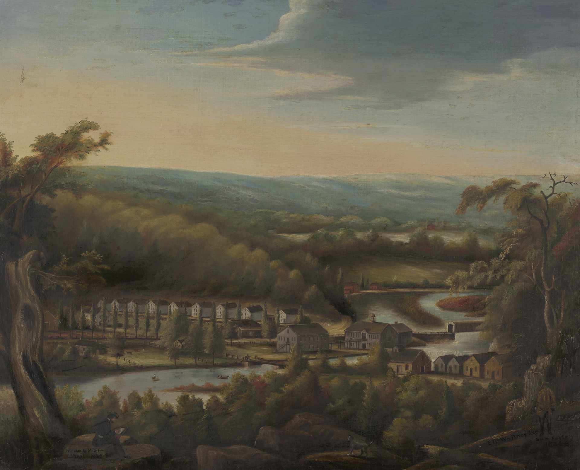 Изображение оружейного завода Эли Уитни в Уитнивилле, сделанное Уильямом Джайлсом Мансоном. Холст, масло, 1826-8 гг.