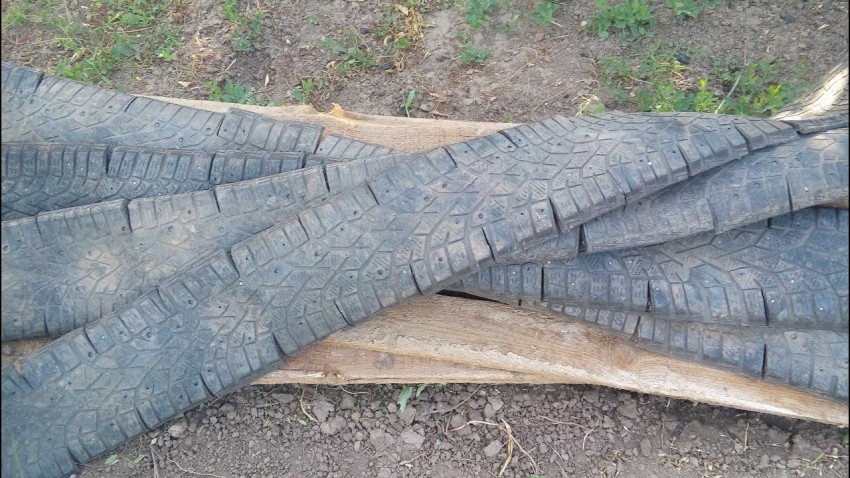 - Я взял две потертых шины от легкового автомобиля, которые уже были не пригодны для эксплуатации.