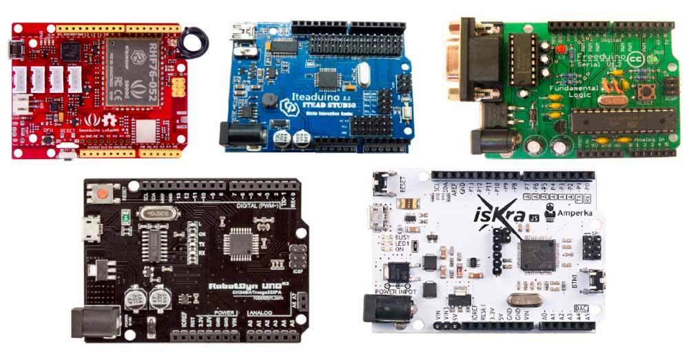 К тому же у Arduino есть многочисленные клоны, многие из которых по качеству совсем не уступают оригиналу. Стоить они могут намного дешевле, но совместимы с софтом и модулями для Arduino. Нет ничего особенно зазорного в покупке клона, поскольку дизайн Arduino опенсорсный. А вот за сборку и качество компонентов клонов отвечают только их производители. Также различаться могут размеры и разводка, расположение кнопок и светодиодов — в тех рамках, что не мешают совместимости с периферией.