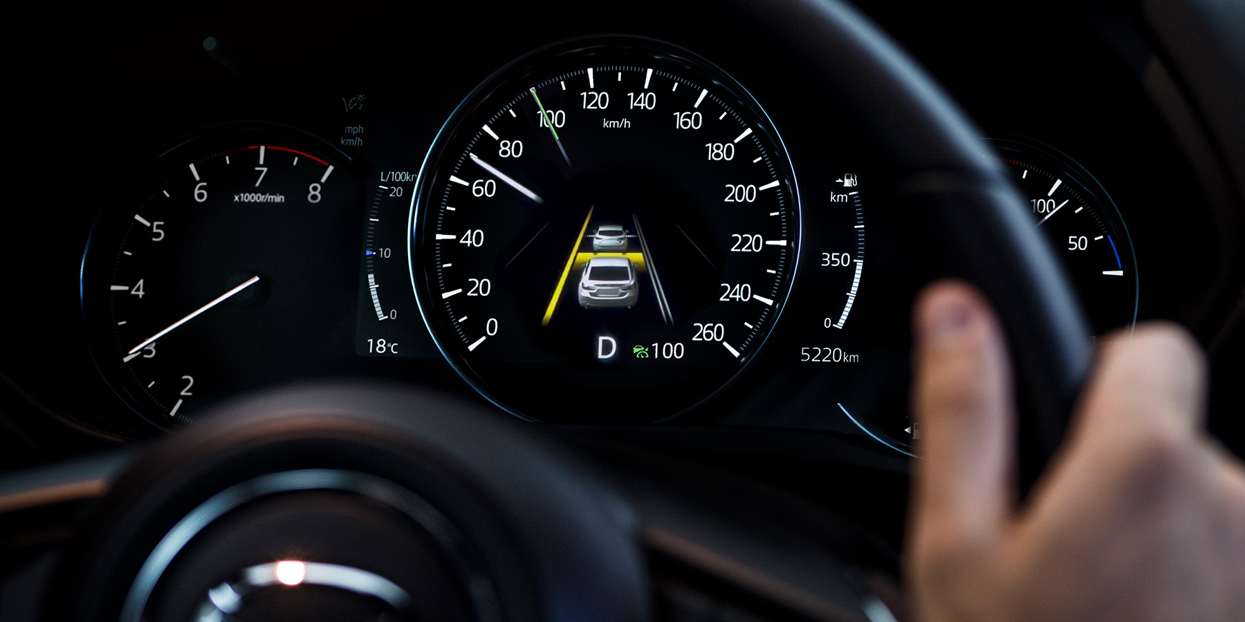 Где увидеть информацию от всех систем автомобиля? В новом Mazda CX-5 достаточно одного взгляда на полностью электронный спидометр.