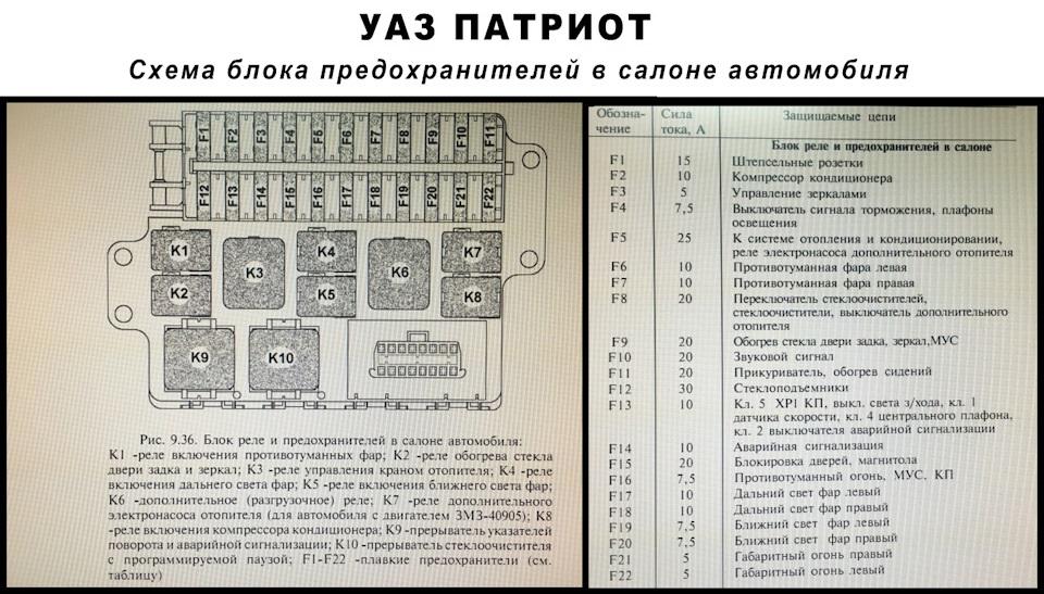 Предохранители УАЗ Патриот в салоне до 2007 г