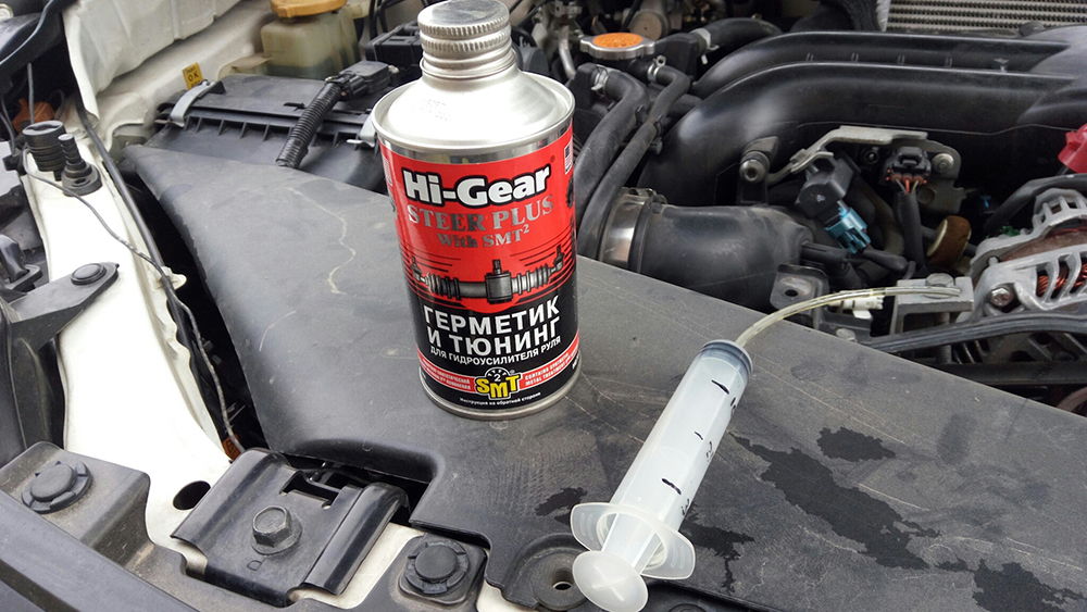 При образовании течи сальников и уплотнителей гидросистемы усиления рулевого управления не всегда есть возможность устранить проблему сразу же. Но нарушение может привести к серьезным утечкам жидкости, руль проворачивается труднее, а система может и вовсе отказать. Это чревато возникновением аварийной ситуации на дороге. Для быстрой помощи, а заодно и для профилактики такой проблемы, существует герметик для гидроусилителя руля Hi-Gear.