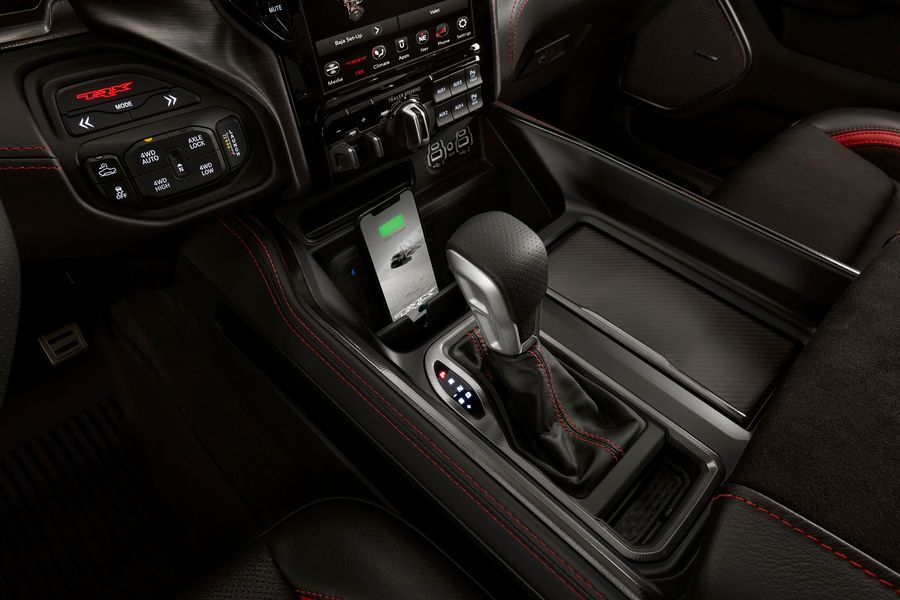 Передние сиденья созданы специально для TRX и имеют усиленную боковую поддержку, а также вышивку на спинках. А еще дизайнеры нарисовали новое рулевое колесо со скошенной нижней частью и алюминиевые подрулевые лепестки.