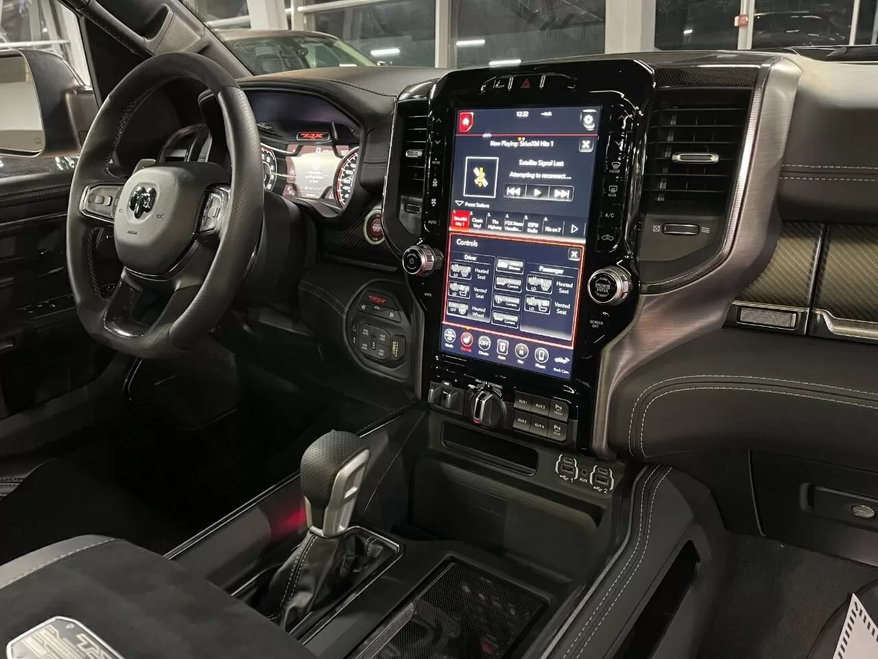 Рулевое колесо RAM 1500 TRX оснащено подрулевыми лепестками ручного переключения передач, выполненными из алюминия, а также кнопками управления наиболее востребованными водителем системами.
