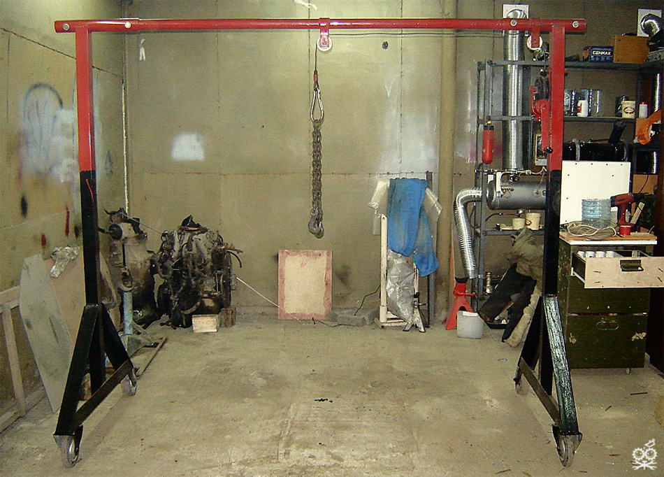 - Ну и в завершении работы самодельный стапель оснащается теми приспособлениями для ремонта, ради использования которых он и создавался: крюками, цепями, гидравликой.