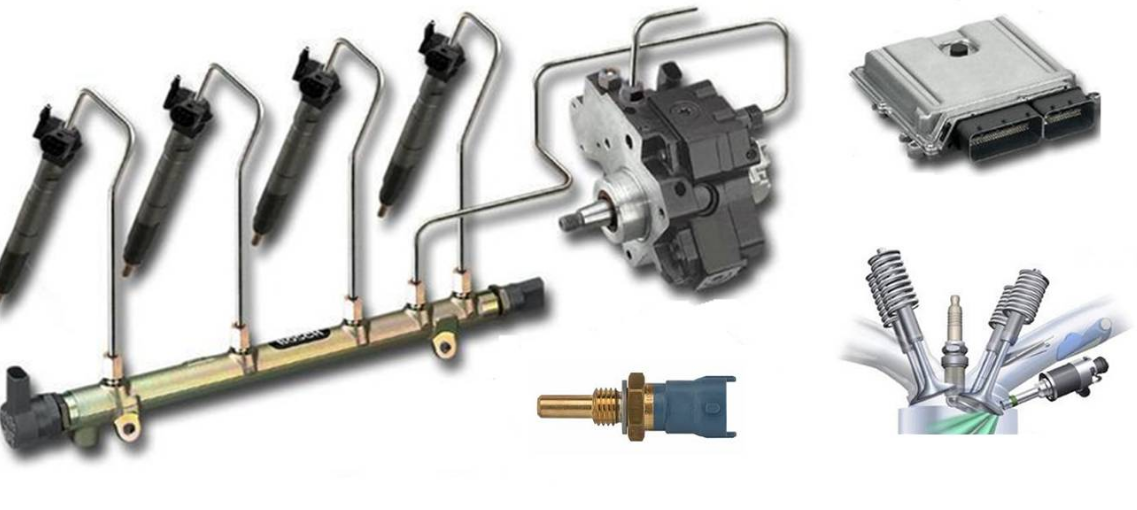 Устройства впрыска топлива. Это форсунки в дизельных и инжекторных бензиновых двигателях. Однако в дизельных моторах (а также и в инжекторах с непосредственным впрыском) форсунки установлены непосредственно в головках цилиндров, а в инжекторных моторах — во впускных коллекторах.
