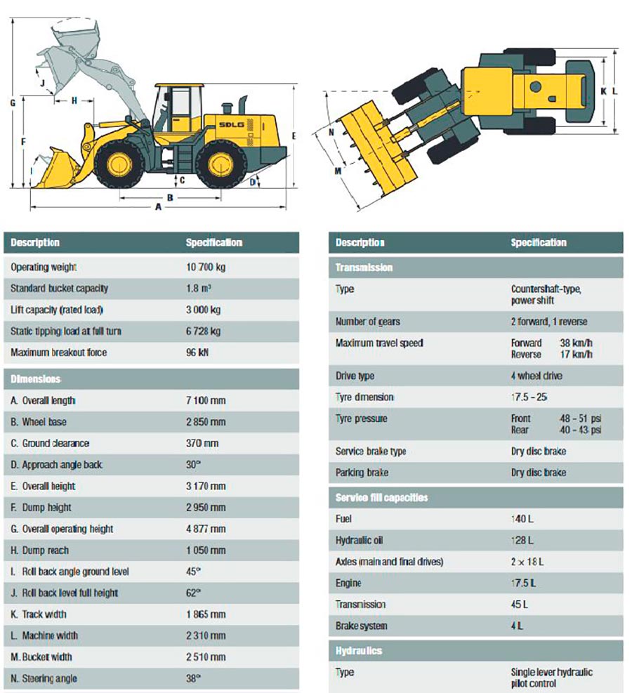 Все китайские погрузчики марки SDLG очень компактны и свободно передвигаются на самых ограниченных площадках, несмотря на особенно вместительный ковш и высокую производительность. Их высокие характеристики и надежность работы объясняются оригинальными элементами конструкции: