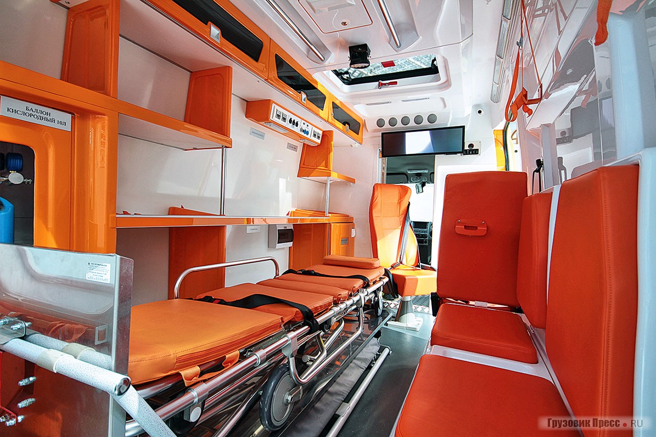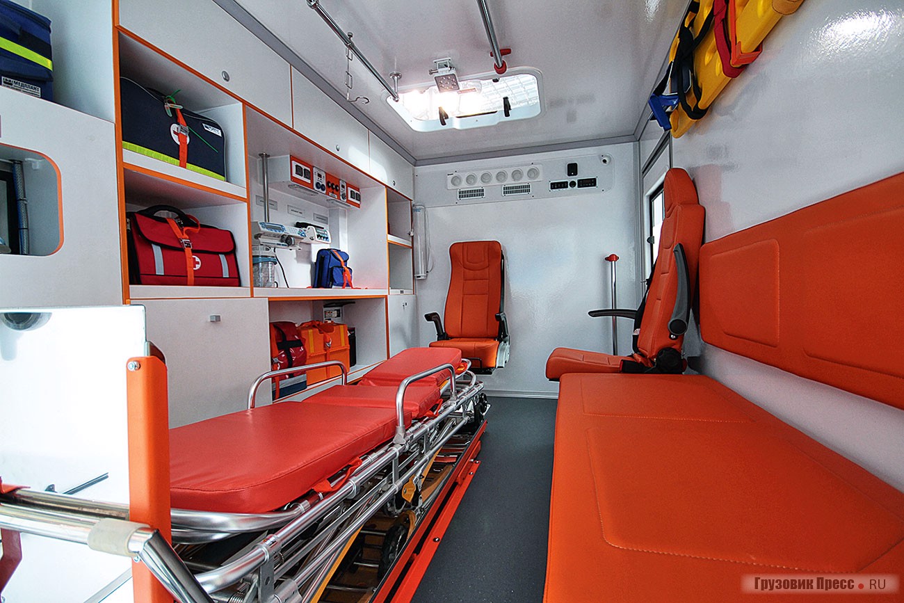 Модульный АСМП представляет собой шасси «ГАЗель NEXT» (A21R26), на которое установлена специальная медицинская надстройка. В отличие от традиционной модели машины скорой помощи, которая выполняется на базе цельнометаллических фургонов и микроавтобусов, модульная конструкция позволяет при необходимости легко снять медицинскую надстройку (модуль) и заменить её на другую надстройку, хозяйственного назначения (например, на промтоварный или изотермический фургон). Возможно поставить этот медицинский модуль и на другое шасси. Такой подход к изготовлению АСМП продиктован эпидемиологической ситуацией, он позволяет легко сокращать или увеличивать парк медицинских автомобилей в зависимости от необходимости. При износе базового шасси в результате интенсивной эксплуатации модуль с дорогостоящим медицинским оборудованием можно целиком перенести на новое шасси, что позволит существенно снизить расходы на обновление парка станций скорой помощи. Съёмный модуль имеет строго прямоугольную форму. Возможно это менее эстетично, но отсуствие сужения в верхней части позволяет поместить больше медицинского оборудования. К тому же нужно помнить о повышении комфорта работы медиков при сохранении общих компактных габаритов автомобиля. Оптимизированная форма модуля позволила максимально укомплектовать АСМП и разместить в салоне сразу двоих пациентов. Хочу напомнить, что класс С подразумевает возможность проведения лечебных мероприятий скорой медицинской помощи силами реанимационной бригады, а также транспортировку и мониторинг состояния пациента на догоспитальном этапе.