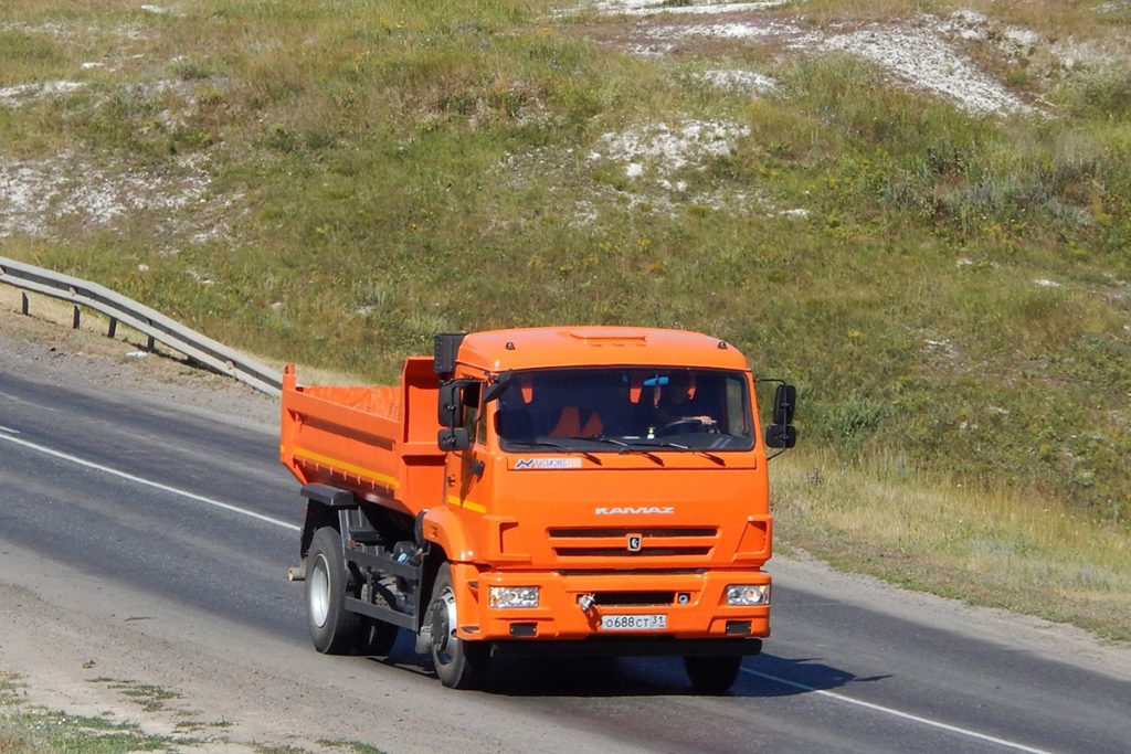 У грузовика колесная формула 4х2 расположена на базе шасси КАМАЗ 4308, что позволяет использовать самосвал в городских условиях для обслуживания объектов с хорошими подъездными площадками.