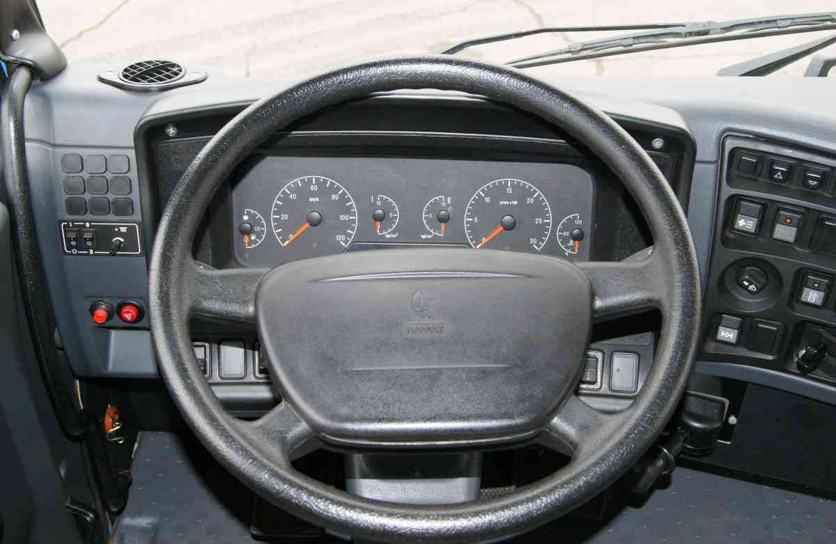 Маленький секрет кабины Axor: она похожа на Actros, но от более легкой серии Atego. Потому у Axor в облицовке радиатора поднимается только часть панели, у него высокие арки и крылья, кабина приподнята вверх, хотя тоннель двигателя возвышается над полом на вполне приемлемые 300 мм. Жаль, что место в арках бездарно пропадает — инструментальный ящик всего один, в левом крыле, и притом небольшой. В правом крыле вообще пустота. С улицы в полость под нижней полкой спальника не попасть, только из кабины. Там можно разместить какие-то пожитки и продукты, кроме того, кабина с высокой крышей радует шкафчиками над ветровым стеклом, они достаточно вместительны и сделаны добротно. От пола до потолка — 1910 мм, благодаря чему водитель может перемещаться внутри кабины в полный рост. В сравнении со спальником Actros спальные полки коротки — чуть длиннее 2 метров, и узковаты: нижняя — 685 мм, верхняя — 700 миллиметров. Рулевая колонка с пневмофиксатором, водительское сиденье известных компаний Isringhausen или Grammer, на пневмоподвеске, со всеми необходимыми регулировками. Быть может, и для «корейской» кабины кресла начнут поставлять немцы? Панель приборов у грузовиков Mercedes одинаковой V-образной формы, или по-другому — «чайкой», причем тон в этой моде опять-таки задавал Actros. В оснащение перспективного камского тягача с немецкой кабиной входят также кондиционер, электростеклоподъемники, «умный» руль и круиз-контроль.