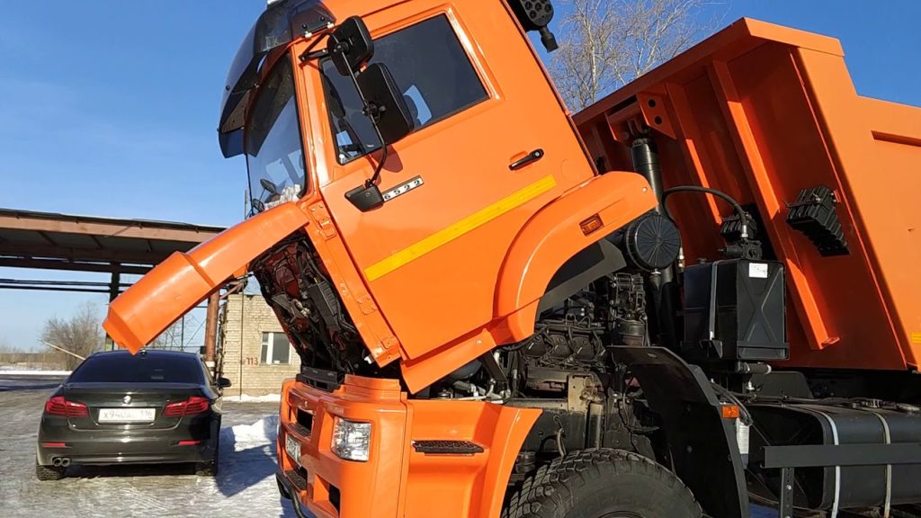 КамАЗ-65222 получил рестайлинговую наклоняемую кабину, которая устанавливается над двигателем и имеет улучшенную шумоизоляцию.