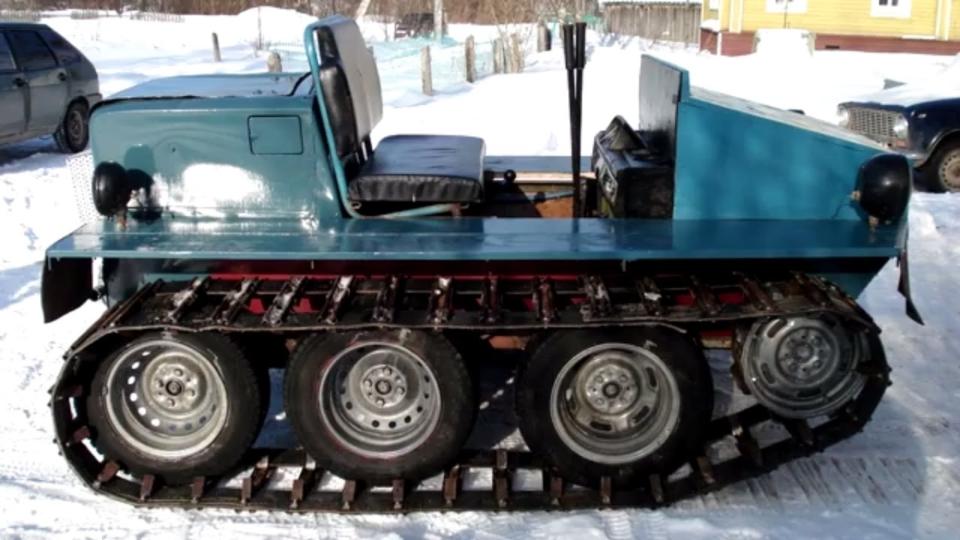 Самодельная гусеница для вездехода или снегохода, имеющих небольшой вес, может быть изготовлена на основе простейшей втулочно-роликовой цепи и транспортерной ленты. Да и делать ее очень просто, нет необходимости приобретать специальный инструмент. Для того чтобы такая самодельная гусеница служила дольше, необходимо прошить край транспортерной ленты леской. Шаг — около сантиметра. Эта процедура поможет уберечь ленту от «разлохмачивания». А вот соединять ее в кольцо можно любым приемлемым и доступным для вас способом. Менее надежный — это просто сшить торцы ленты. Чаще всего советуют применить шарнир по типу рояльной петли. А вот толщина ленты зависит от мощности установленного на вездеход двигателя. Показатель от 8 до 10 мм будет уместным, если вы используете мотор от отечественного мотоцикла. Устройство, выполненное подобным способом, хорошо подойдет для эксплуатации на снегоходе. Плюс ко всему подобная самодельная гусеница легко поддается и ремонту, и замене в случае повреждения. Это значительно упрощает процесс эксплуатации вашего изобретения.