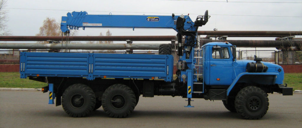Общий вес крановой установки составляет 3,7 тонны, высота в транспортном состоянии – 2,4 метра. В сочетании с бортовым автомобилем многофункциональный кран манипулятор на шасси Урал может преодолевать неровности до 60о, при этом равновесие крановой установки не нарушается.